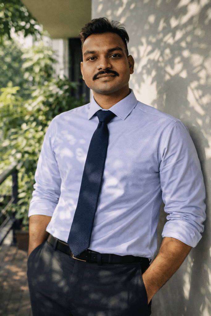 हर फोटो को बहुत ज्यादा formal बनाना जरूरी नहीं होता। कई बार smart-casual professional portraits ज्यादा natural और attractive लगते हैं। ऐसी photos LinkedIn, Instagram profile, portfolio और personal branding के लिए बहुत popular हैं।