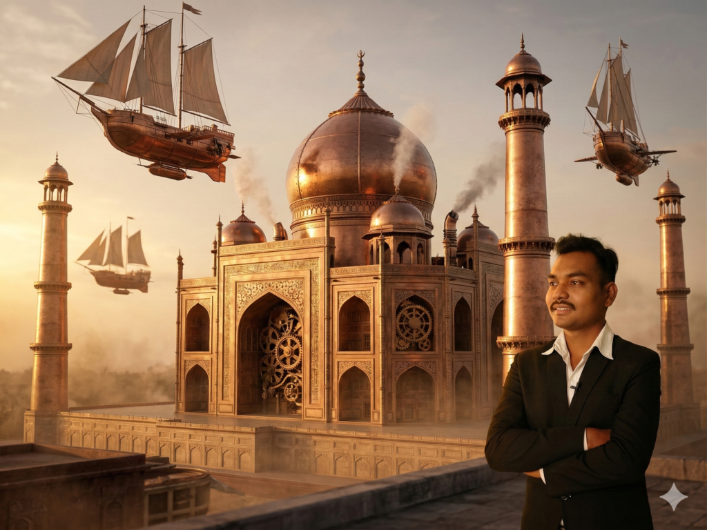 इस guide में हम सीखेंगे कि Gemini AI की मदद से Steampunk style Taj Mahal image कैसे बनाई जाती है।